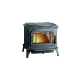 Este fogão a lenha pode funcionar em combustão lenta durante 8 horas sem reabastecimento ou intervenção externa. No final deste período, encontra-se uma reserva de brasas. Combustível: Toros até 54 cm de comprimento (na horizontal) – Ar secundário regulável: O ar secundário protege o vidro contra os depósitos de fumo e de fuligem. Assegura a combustão das matérias voláteis. Sistema de pós-combustão: Injeção de ar pré-aquecido na câmara de combustão. A entrada de ar adicional pela parte traseira destrói os hidrocarbonetos a alta temperatura. A combustão é completa e a poluição é reduzida.