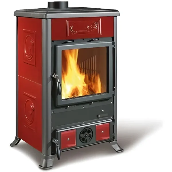 Descubra a salamandra a lenha La Nordica Rossella R1 BII, com a sua fornalha em ferro fundido e o seu revestimento exterior em pedra natural ou em barro. Este fogão a lenha de 11 kW pode aquecer até 252 m3 com um rendimento de 80%. O vidro cerâmico é resistente a 750°C. Disponível em vermelho.